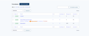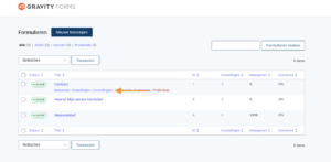 Hier kom je in het overzicht van alle formulieren die op de website zijn aangemaakt.