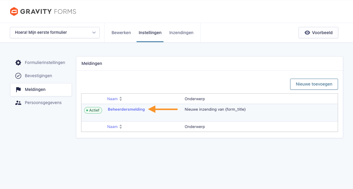 In de volgende stappen laten we zien hoe je de inzendingen van een formulier kunt bekijken.