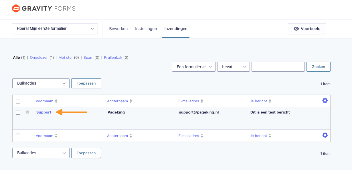 📌 Tip: In het overzicht kun je ook snel belangrijke gegevens zien, zoals de naam, het e-mailadres en het bericht dat is ingevuld.