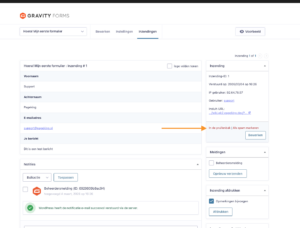 Naast het ontvangen van e-mailnotificaties kun je ook alle formulierinzendingen direct bekijken binnen Gravity Forms. Zo heb je altijd een overzicht van alle ingevulde formulieren en kun je gegevens eenvoudig terugvinden.